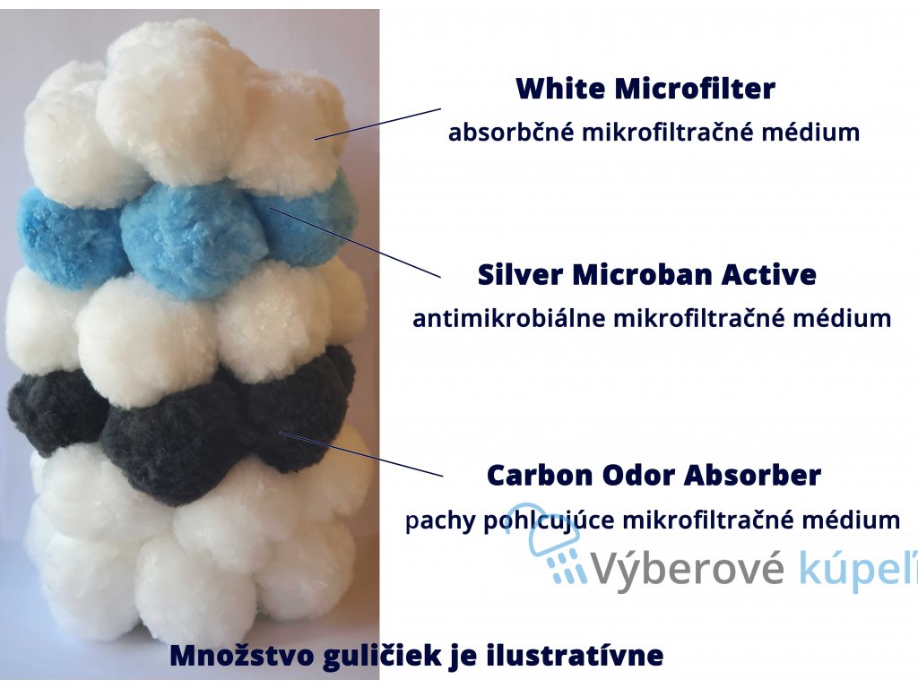Množstvo guličiek na obrázku je ilustratívne. Líši sa s ohľadom na veľkosť filtra.