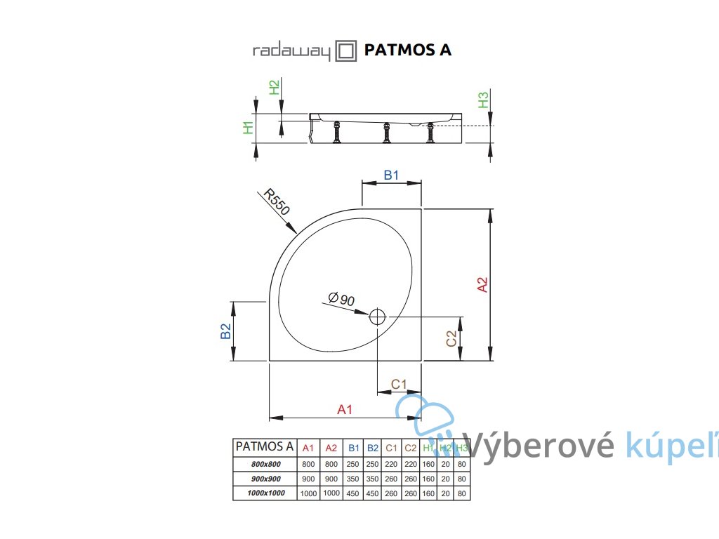 Radaway Patmos A sprchová vanička, akrylát, štvrťkruh 100cm, 4S11155-03
