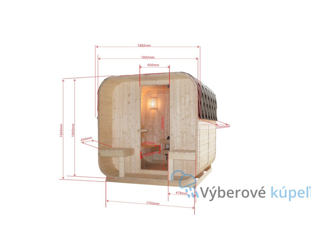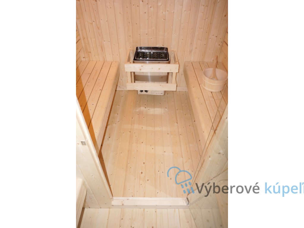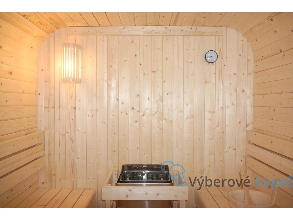 - Výbava: piecka, saunové kamene, vedro, naberačka, presýpacie hodiny, teplomer