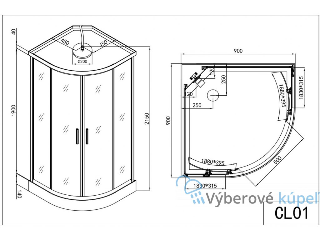 Sanotechnik QuickLine Punto, sprchový box štvrťkruh 90x90x215cm, biely, CL01
