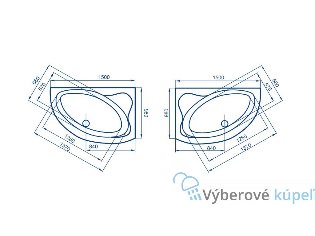 Sanotechnik Rab asymetrická akrylátová vaňa 150x98cm