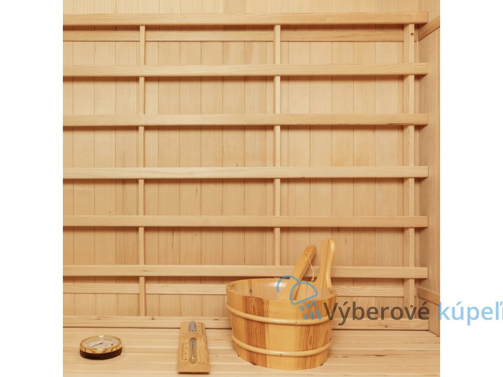 - výbava: saunová piecka, saunové kamene, saunové vedro, naberačka, presýpacie hodiny, teplomer