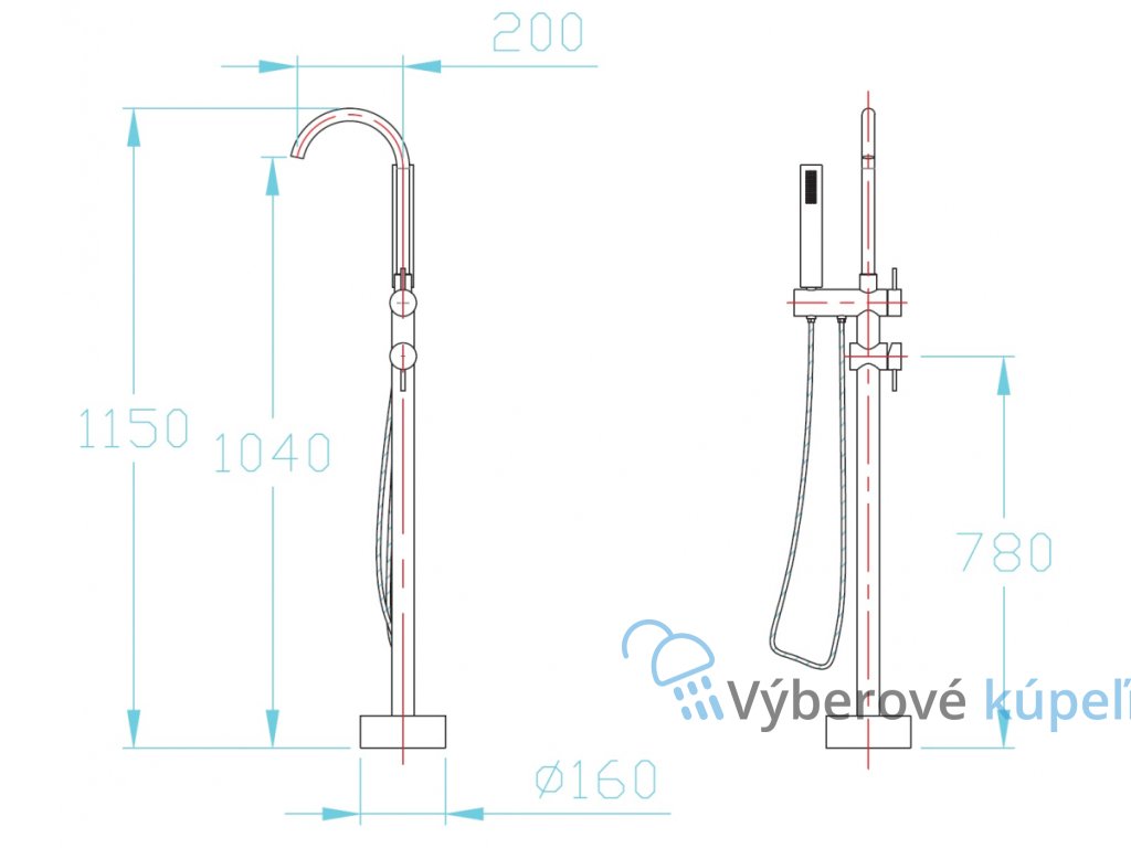 - voľne stojaca vaňová batéria s pripojením pre inštaláciu do podlahy