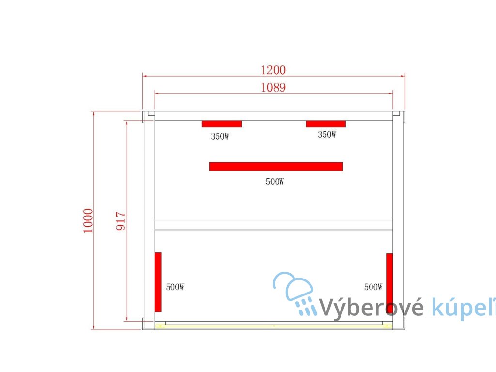 - predná strana >> 2x500 W (1000 W)