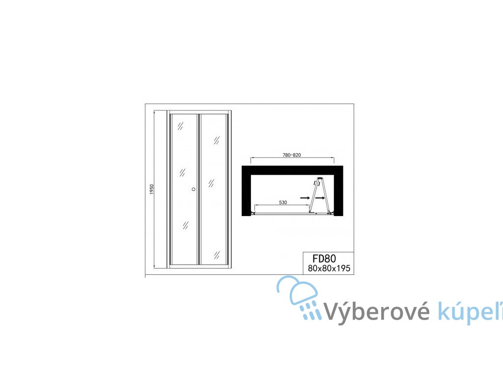 Sanotechnik SOHO Elite Chrome štvorcový sprchový kút, šírka 80cm, zalamovacie dvere + fix