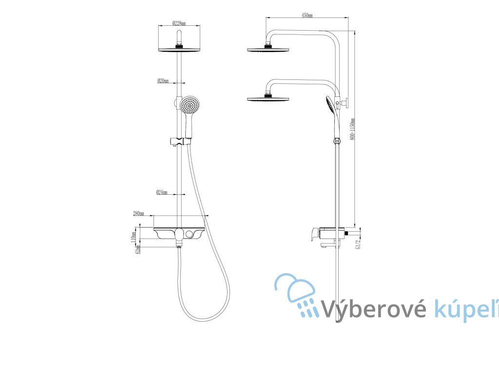 Sanotechnik SOHO BLACK sprchový set, black - hlavová sprcha, ručná sprcha, páková batéria, vaňová výpusť