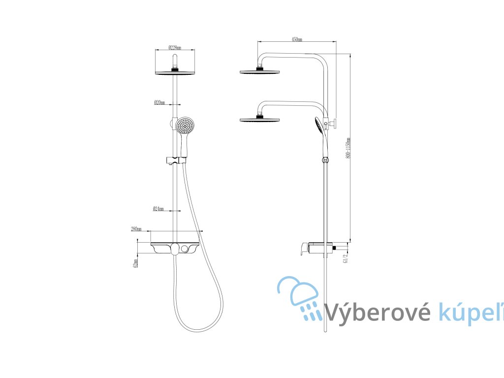 Sprchový set, čierny - hlavová sprcha, ručná sprcha, páková batéria