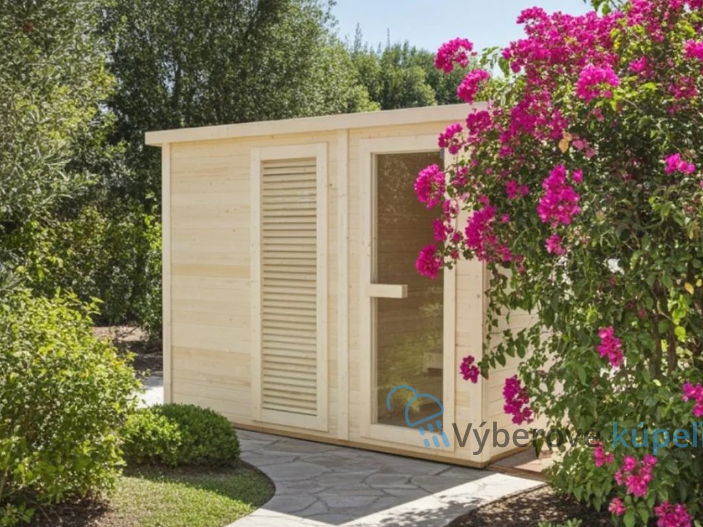 - výbava: saunová piecka, saunové kamene, saunové vedro, naberačka, presýpacie hodiny, teplomer